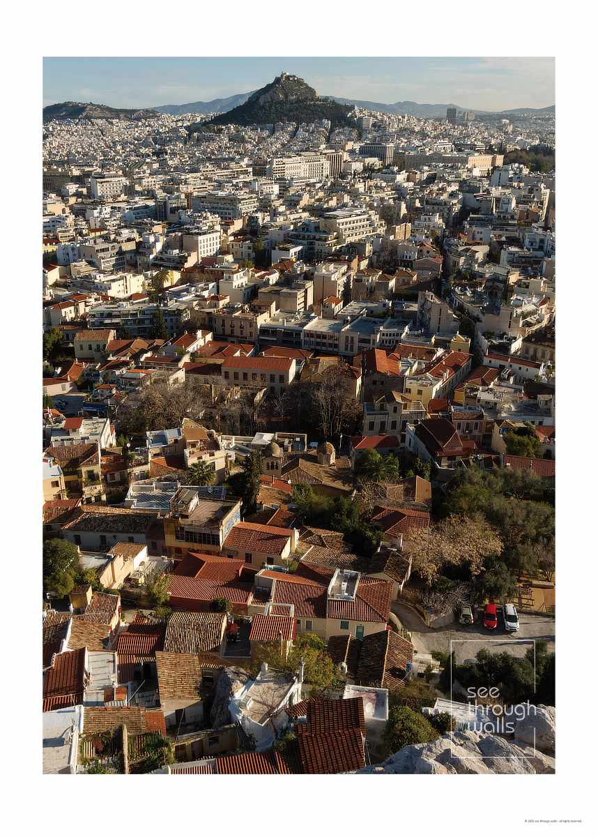 Poster Print – A panoramic view of Athens with colorful rooftops and a hilltop landmark.