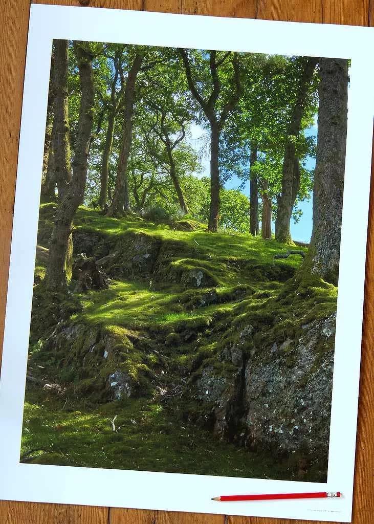 MOSSY GREEN ROCKS AND TREES PRINT        ► Free UK Shipping  •  Large Poster Size   •   Vibrant Colour  •   Primium 250gsm Silk paper  •  Standard Frames  ◄